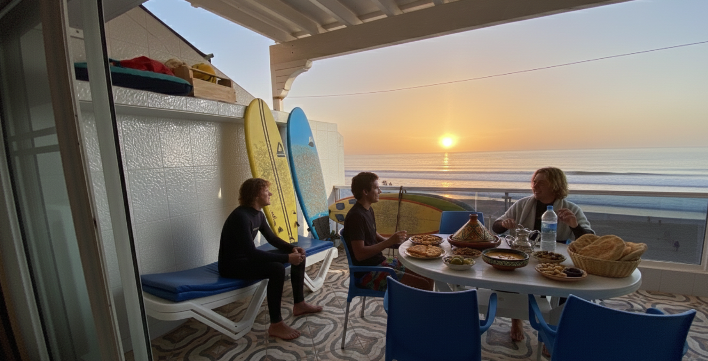 Enjoy a full week of surf, great food, and beach vibes in a cozy sea-view apartment. Everything you need for an unforgettable surf experience in Taghazout.